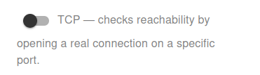 Switch the monitoring mode to TCP to check reachability by opening a real connection on a specific port. Unlike ICMP Ping, TCP checks verify that the service on the selected port is actively responding.